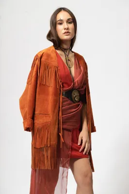 CHALECO PIMKIE GAMUZA MARRON CON FLECOS