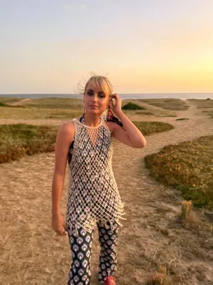 top free people estampado conjunto azul rojo