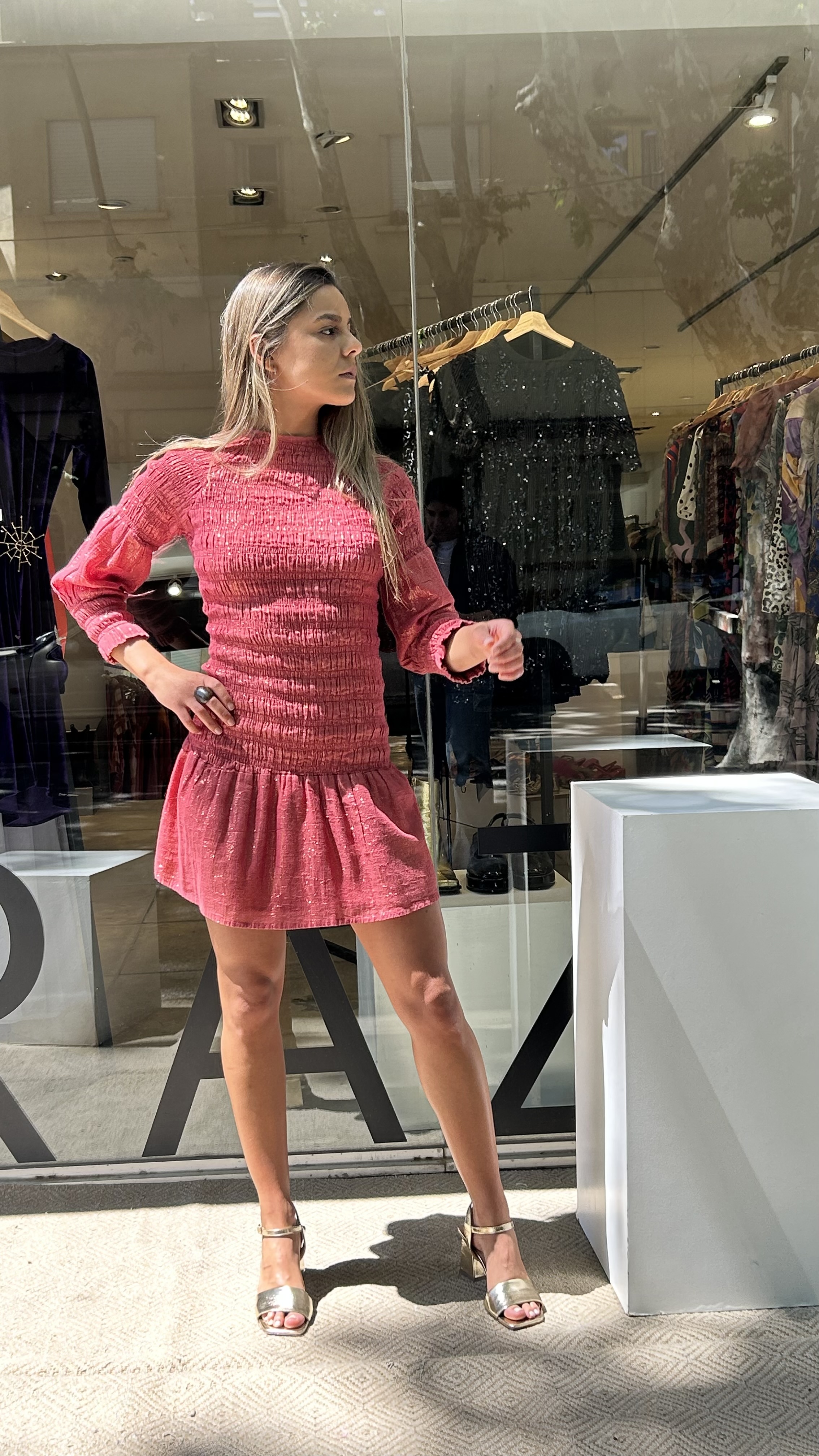 Vestido Corto Rojo Shiny Mangas Largas CHER
