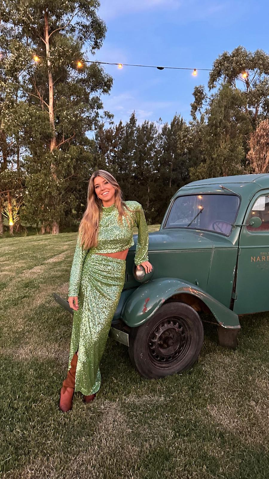 Conjunto lentejuelas verde top y falda